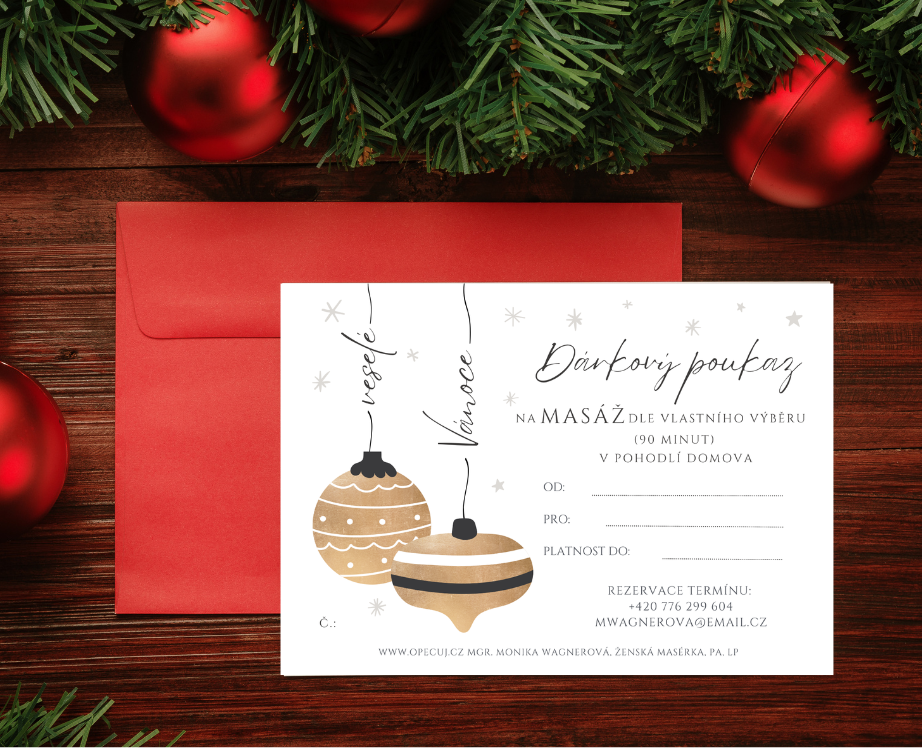 Dárkový poukaz na 90minutovou masáž v pohodlí domova je ideální volba dárku pro každou ženu, která si zaslouží zastavení a péči bez zbytečného cestování, stresu a shonu.